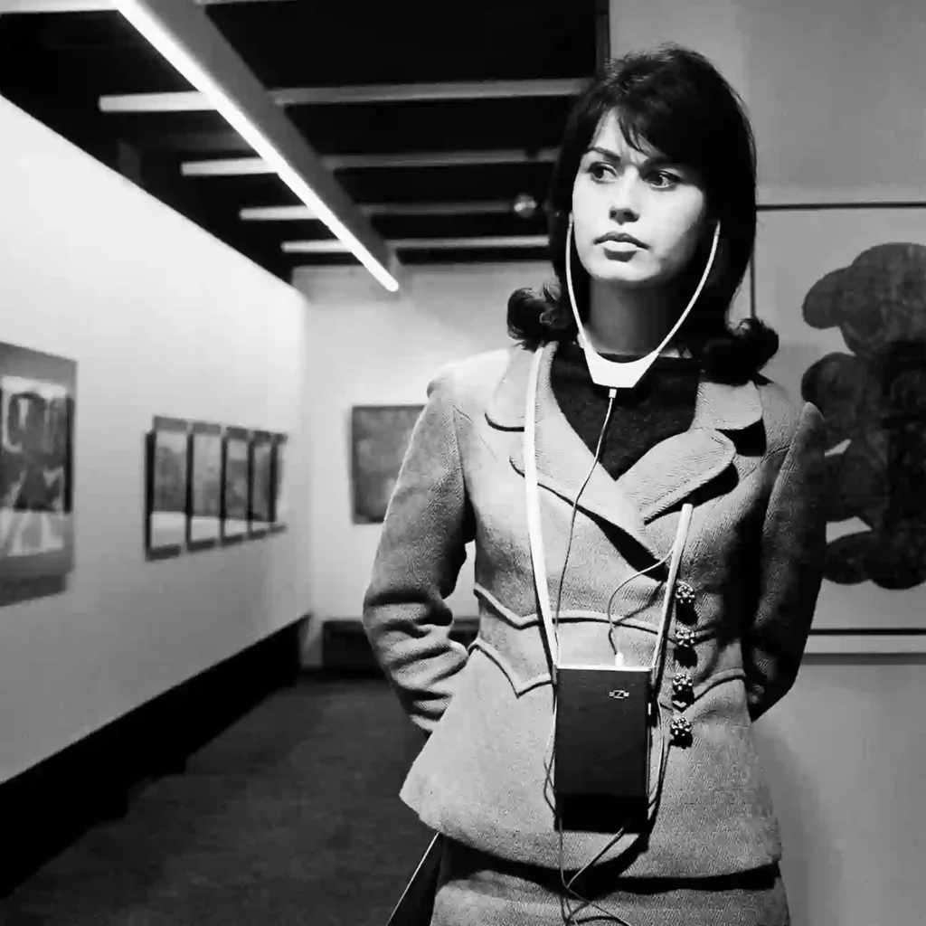 Foto van een klassiek Sennheiser Tourguide systeem.