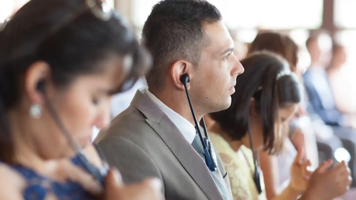Het komt vaak voor dat een fluisterset ingezet wordt als er meerdere talen gesproken worden. De vloertaal wordt dan simultaan vertaald naar welke talen dan ook. Dat kunnen rechtszaken, kerkdiensten, presentaties zijn, maar e hebben het ook over meertalige bruiloften. Iemand trouwt met zijn of haar vakantieliefde. Super romantisch natuurlijk, maar de kans is groot dat de helft van de aanwezigen een groot gedeelte van de dag niet meekrijgt. Dit komt omdat ze de andere taal wellicht (nog) niet helemaal onder de knie hebben. Door gebruik te maken van een fluisterset heeft u een eenvoudige oplossing met een geweldig resultaat! Maak gebruik van een fluisterset. We kunnen u zelfs helpen met uw zoektocht naar de perfecte tolk. Beter kan niet, makkelijker kan niet.